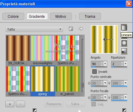 Passa il colore di primo piano a Gradiente e seleziona il gradiente spring, stile Lineare.