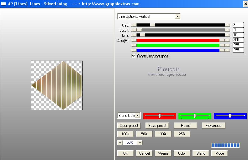 20. Effetti>Plugins>AP [Lines] - Lines SilverLining, Line Options: Vertical selezionato
