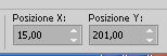 Imposta Posizione X: 15,00 e Posizione Y: 201,00