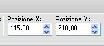 e imposta Posizione X: 115,00 e Posizione Y: 210,00.