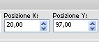 e imposta Posizione X: 20,00 e Posizione Y: 97,00.