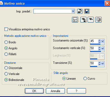 14. Effetti>Effetti d'immagine>Motivo unico, con i settaggi precedenti.