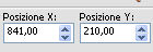 e imposta Posizione x: 841,00 e Posizione Y: 210,00.