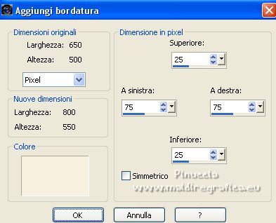 Immagine>Aggiungi bordatura, simmetriche non selezionato, colore di sfondo.