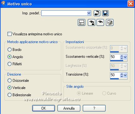8. Effetti>Effetti d'immagine>Motivo unico, con i settaggi precedenti.