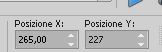 Imposta Posizione x: 265,00 e Posizione Y: 227,00.