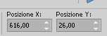 Imposta Posizione X: 616,00 e Posizione Y: 26,00.