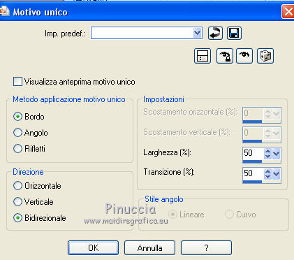 5. Effetti>Effetti di immagine>Motivo unico, con i settaggi standard.