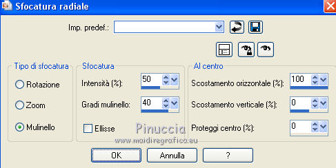 43. Regola>Sfocatura>Sfocatura radiale, con i settaggi precedenti.