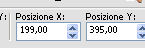 Imposta Posizione X: 199,00 e Posizione Y: 395,00.