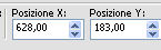 Imposta Posizione X: 628,00 e Posizione Y: 183,00.