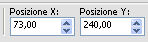 Imposta Posizione X: 73,00 e Posizione Y: 240,00.