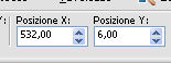 Imposta Posizione X: 532,00 e Posizione Y: 6,00.