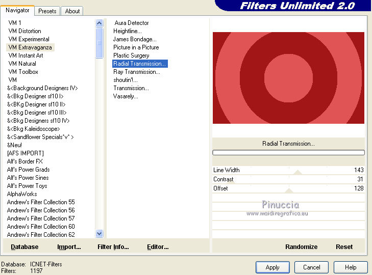 2. Effets>Modules Externes>Filters Unlimited 2.0 - VM Extravaganza - Radial Transmission