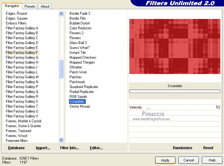 Effets>Modules Externes>Filters Unlimited 2.0 - Filter Factory Gallery F - Scrambler.