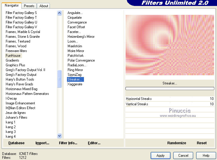 2. Effets>Modules Externes>Filters Unlimited 2.0 - Funhouse - Streaker, par défaut.