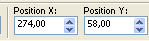 and set Position X: 274,00 and Position Y: 58,00.