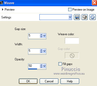 Effects>Texture Effects>Weave, same settings.