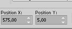 and set Position X: 575,00 and Position Y: 5,00