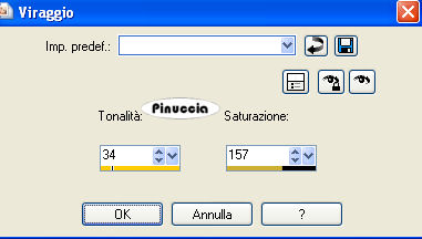 Regola>Tonalità e saturazione>Viraggio, con i settaggi precedenti.