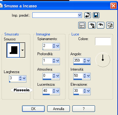 Effetti>Effetti 3D>Smusso a incasso, con i settaggi precedenti.
