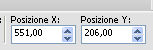 e imposta Posizione X: 551,00 e Posizione Y: 205,00.
