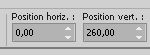 Placer Position horiz.: 0,00 et Position vert.: 260,00.