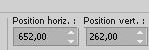 Placer Position horiz.: 652,00 et Position vert.: 262,00.