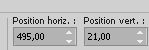 Placer Position horiz.: 495,00 et Position vert.: 21,00.