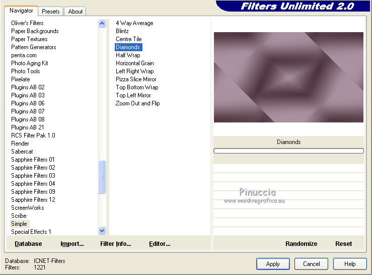4. Effetti>Plugins>Filters Unlimited 2.0 - Simple - Diamonds.