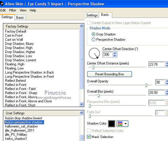 33. Effetti>Plugins>Alien Skin Eye Candy 5 Impact - Perspective Shadow.
