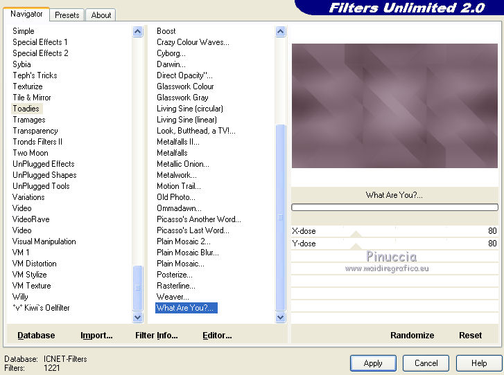 Effetti>Plugins>Filters Unlimited 2.0 - Toadies - What are you.