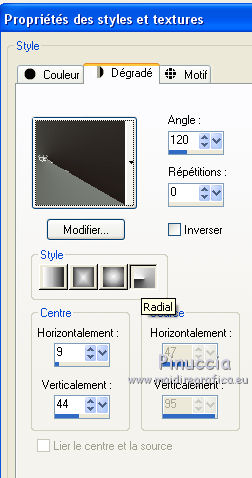 Préparer un dégradé de premier plan/arrière plan, style Radial.