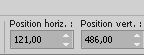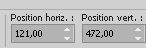 Placer Position horiz.: 121,00 et Position vert.: 472,00.