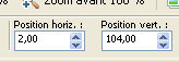 et placer Position horiz.: 2,00 et Position vert.: 104,00.