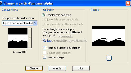 Sélections>Charger/Enregistrer une sélection>Charger à partir d'un canal alpha.