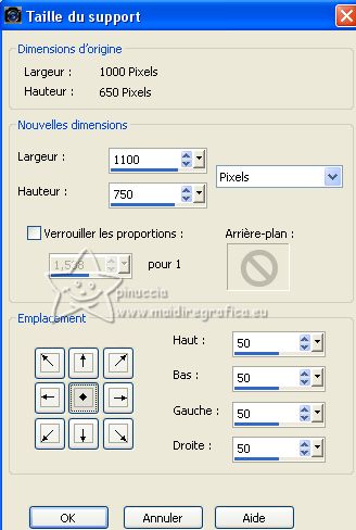 Placer Position horiz.: 539,00 et Position vert.: -2,00