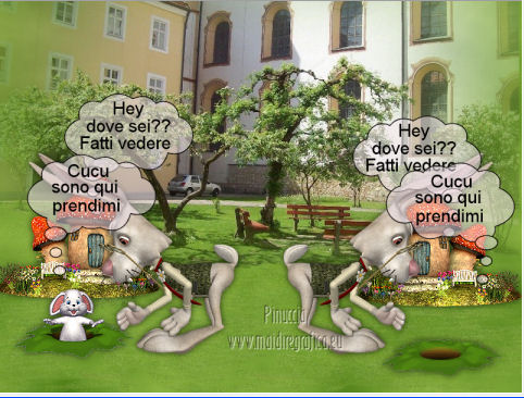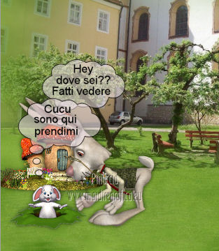 sopra la testa del coniglio, quando guarda nel buco vuoto.