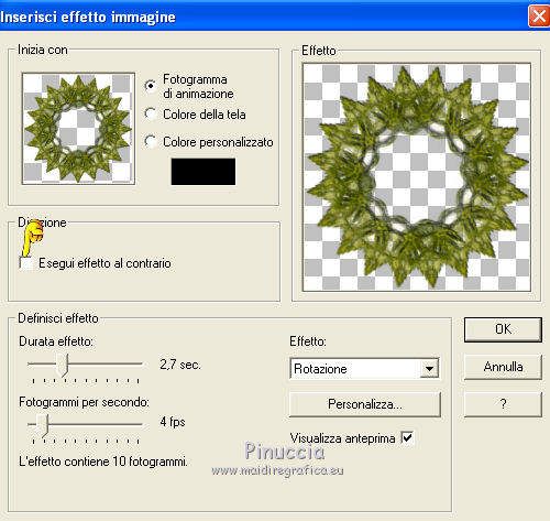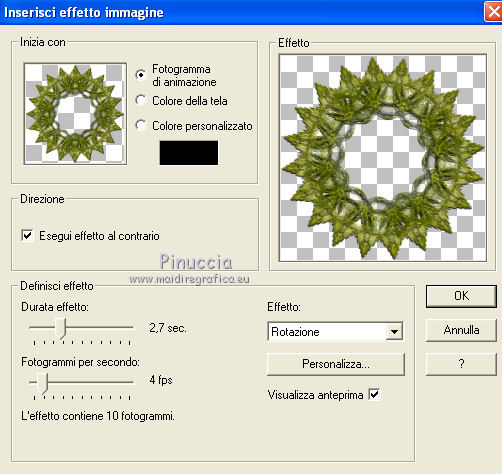 Per la seconda animazione, per il mio esempio, ho deselezionato Esegui effetto al contrario.