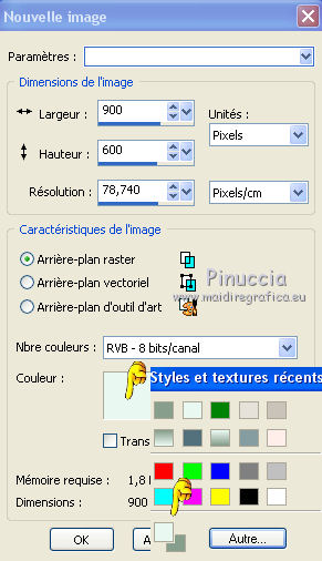 2. Ouvrir une nouvelle image, couleur d'avant plan, 900 x 600 pixels.