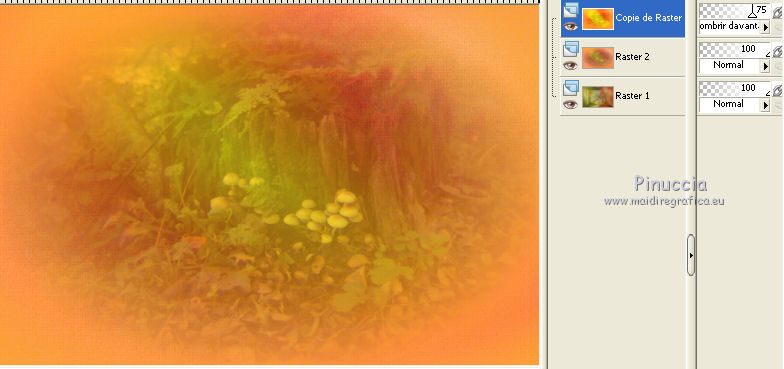 Placer le calque en mode Assombrir davantage et réduire l'opacité à 75%.