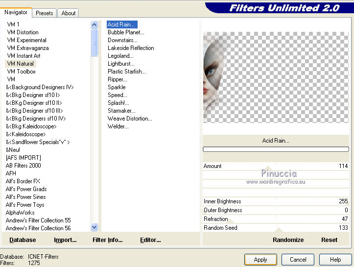 Effetti>Plugins>Filters Unlimited 2.0 - VM Natural - Acid Rain, con i settaggi standard.