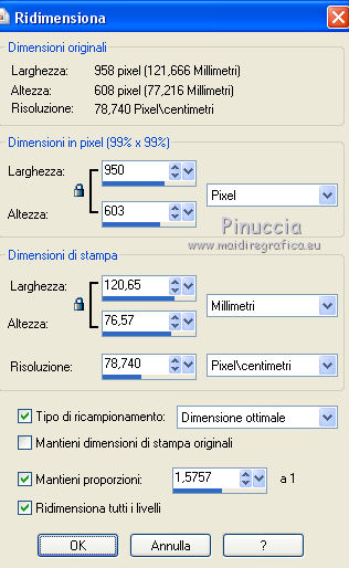 32. Immagine>Ridimensiona, a 950 pixels di larghezza, tutti i livelli selezionato.