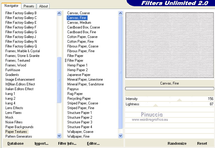 Effetti>Plugins>Filters Unlimited 2.0 - Paper Textures - Canvas,Fine.