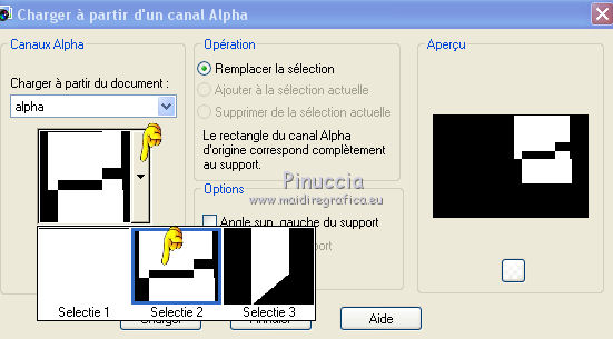 Sélections>Charger/Enregistrer une sélection>Charger à partir d'un canal Alpha.