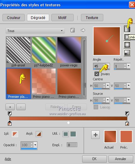 Préparer un dégradé de premier plan/arrière plan, style Linéaire.