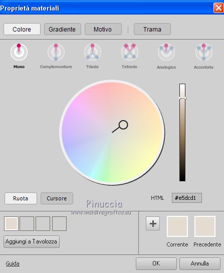 cliccando con il tasto destro del mouse sulla paletta del colore,