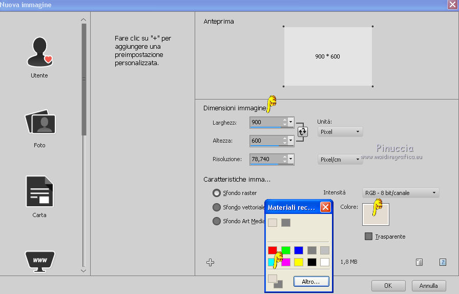 2. Apri una nuova immagine 900 x 600 pixels, sfondo colore di primo piano.