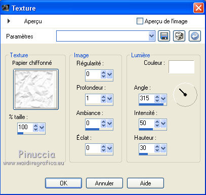 17. Effets>Effets de textures>Texture - sélectionner la texture Papier chiffoné (Corel_15_038) ou une texture à choix.