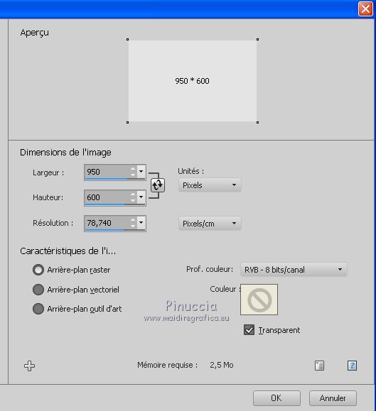 Ouvrir une nouvelle image transparente 950 x 600 pixels.
